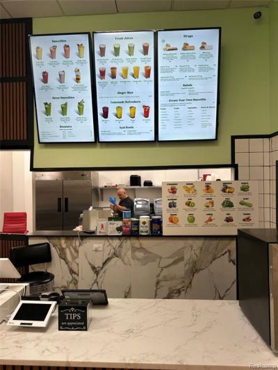 FRESH BLENDS/SMOOTHIES AND WRAPS LOCATED INSIDE MEIJER ON TELEGRAPH AND 12 MILE RD/ OPERATION HOURS 10-7/LOW OVERHEAD ( NO ELECTRICITY NOR WATER BILLS) RENT IS $579 A MONTH, PHONE AND INTERNET ABOUT $175 A MONTH. DOING AVERAGE OF $14000 A MONTH IN SALES/ PERFECT FOR A ONE PERSON OPERATION/ 40-45% PROFIT MARGIN/ FOUR YEARS LEFT ON LEASE.