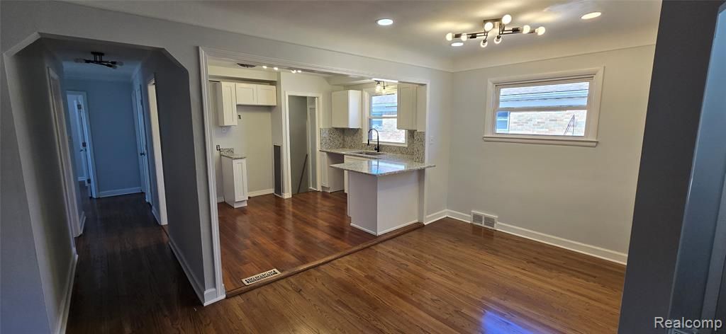 Step into this beautifully updated home featuring a bright, open-concept layout designed for modern living. The spacious living room is anchored by a stylish fireplace and seamlessly flows into the dining area and kitchen—perfect for entertaining or everyday comfort. Gleaming hardwood floors run throughout the main living space, complemented by recessed lighting and abundant natural light. The fully updated kitchen offers granite countertops, custom cabinetry, and a convenient peninsula with bar seating, creating both function and style. The thoughtfully designed layout provides clearly defined living and dining spaces while maintaining an open, airy feel. Whether you're hosting guests or enjoying a quiet night in, this home offers the perfect balance of comfort and sophistication. This move-in-ready property is ideal for homeowners or investors alike. Don’t miss your opportunity to own a turnkey home with modern finishes and timeless appeal.