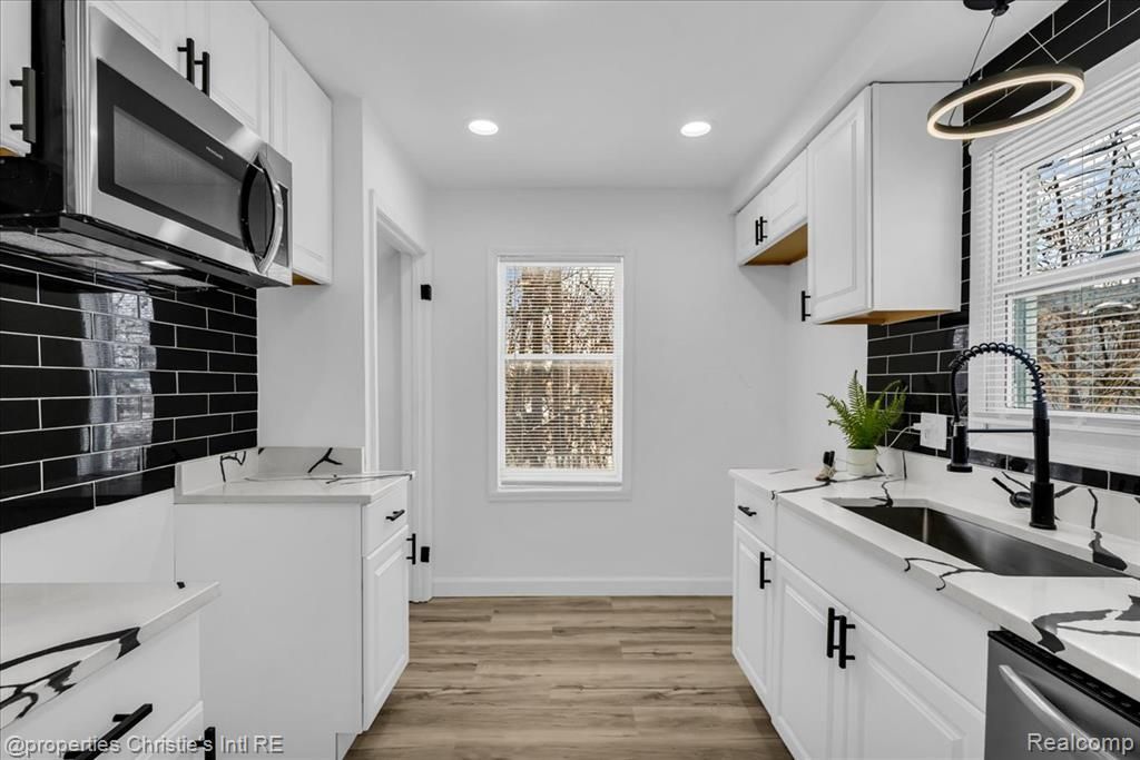 Experience refined living in this completely updated 3-bedroom, 1-bath bungalow, beautifully situated on Detroit’s sought-after northwest side. Thoughtfully renovated from top to bottom, this residence showcases light-toned flooring throughout, curated custom lighting, and recessed illumination that enhances the home’s warm, sophisticated ambiance. The sleek galley-style kitchen is both functional and stylish, offering generous prep space and abundant storage, perfect for hosting or everyday elegance. Indulge in the spa-inspired bathroom, featuring a rain shower head and contemporary finishes designed for relaxation. Two spacious bedrooms are located on the main level, while the expansive upstairs primary suite serves as a private retreat, ideal for rest and rejuvenation. The finished basement provides additional space for entertaining, lounging, or a home studio. Ideally located just minutes from Livernois and the Avenue of Fashion, Oak Park, and Southfield, with close proximity to shopping, dining, and places of worship. This home delivers elevated living with unmatched convenience!