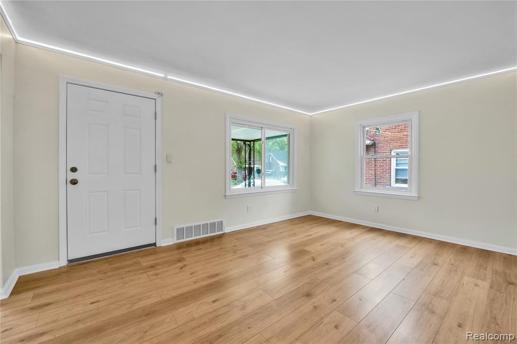 Here is a stylishly renovated bungalow near the Detroit - Warren border. This spacious brick dwelling boasts a beautiful brand new kitchen with butcher block countertops and stainless steel appliances. Bathrooms well appointed with new tub and vanities. Fresh paint and flooring throughout. Entry level features a large bonus room that could serve as a fourth bedroom or child's playroom. Full basement. One car garage. Your Buyers will be pleased with the thoughtful design and superior workmanship of this rehab.