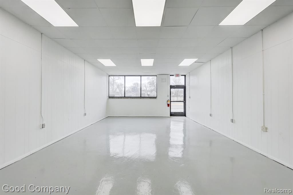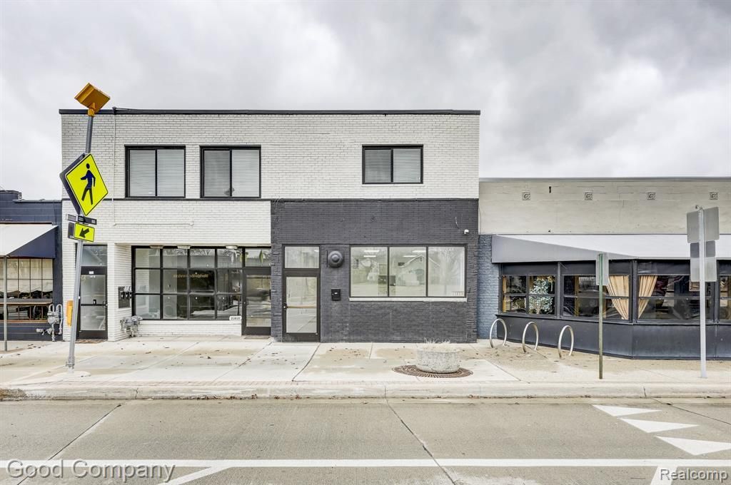Wonderful commercial lease opportunity in the heart of Hazel Park's hottest block on John R, situated next to the new Bar Gabi and acclaimed Mabel Gray restaurant, offering incredible built-in foot traffic and visibility for your next venture. The striking two-story white and charcoal painted brick façade with bold black-trimmed storefront windows makes an immediate impression from the street. Step inside to a large, bright, wide-open front space with gleaming epoxy floors and a clean white canvas ready to be transformed into whatever your business vision demands — retail, studio, office, you name it. A second expansive open room sits just beyond, equally well-lit and flexible, with two half baths, a utility sink, and its own separate entry access. The rear of the space opens into a generous utility and storage area with a third entry. The rear of the building features a private courtyard-style entry shared with just a couple of neighboring tenants, plus a generous paved parking lot with multiple spots — a huge bonus on a busy commercial corridor. Minimum five-year lease. Don't miss your chance to plant your flag in one of Hazel Park's most beloved destinations. Welcome Home!