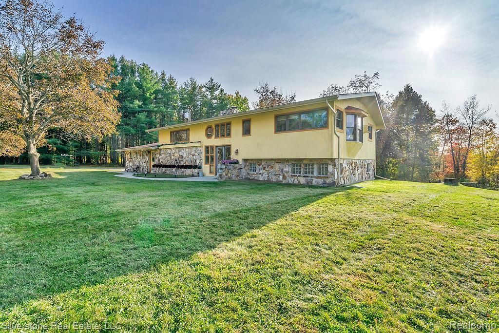 This serene 4-bedroom, 2.5-bath home is perfectly positioned on over 20 acres of breathtaking, partially wooded land—offering the ultimate blend of privacy, recreation, and opportunity. Recent improvements include a newer roof, a new master bedroom picture window, construction upgrades, fresh paint, and brand-new flooring and trim throughout—making this home move-in ready with modern updates already complete. Inside, you’ll find two inviting fireplaces that create warmth and charm, perfect for cozy Michigan evenings. Large windows showcase the peaceful surroundings, where deer and turkey are frequent visitors. The property features an impressive 645 feet of golf course frontage on Castle Creek Golf Course, and the expansive acreage is splittable, offering outstanding potential for future development, investment, or additional building opportunities. A stocked pond adds to the appeal and is best enjoyed from the newer back deck—ideal for morning coffee or sunset relaxation. For entertaining, the cement-floor pavilion provides a dreamy outdoor gathering space, perfect for hosting family and friends. A true standout feature is the massive 7,200 sq. ft. pole barn—fully insulated and heated with 400-amp service. With potential to be rezoned for commercial use, this space opens the door to endless possibilities for business owners, hobbyists, or collectors. This exceptional property delivers the best of both worlds: peaceful seclusion surrounded by nature, yet convenient access to nearby amenities.