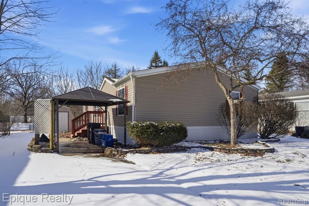 Welcome to this well-maintained 3-bedroom, 2-full-bath manufactured home located on a quiet cul-de-sac in the desirable Flushing Estates community. The home features a spacious driveway with a gazebo, perfectly situated beneath two mature shade trees—ideal for outdoor relaxation. Inside, enjoy an open and functional floor plan with numerous recent updates, including luxury vinyl flooring throughout the living room, dining area, and two bedrooms, updated kitchen countertops, sink, and dishwasher, a remodeled primary bathroom, and new ceiling lighting throughout. A washer and dryer are included for added convenience. Peaceful setting with modern updates—move-in ready and easy to enjoy.