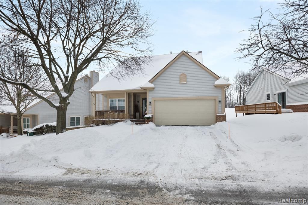 Well-maintained ranch-style detached condo in a desirable Novi community near Maple Greens Golf Course, offering easy one-level living with the privacy of a single-family home. The open main-level layout features vaulted ceilings, a spacious great room, and a cozy gas fireplace, creating a bright and comfortable living space. The kitchen is thoughtfully updated with quartz countertops, shaker-style cabinetry, soft-close doors and drawers, and a Lazy Susan for added storage and functionality. The primary suite includes a private bath and large walk-in closet, while additional bedrooms provide flexibility for guests or a home office. First-floor laundry adds everyday convenience. The finished basement offers a craft room, plenty of storage, and additional space for entertaining, hobbies, or recreation. Enjoy outdoor living on the deck. Additional highlights include an attached two-car garage and new A/C. Conveniently located near shopping, dining, parks, golf, and expressways.
