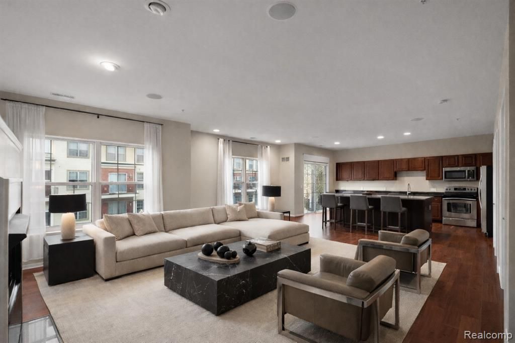 This charming brick townhouse in The Village at Midtown Square offers a prime location just minutes from Downtown Birmingham, Somerset Mall, Whole Foods, and the Troy Transit Center. Located in the highly-rated Birmingham Schools district, it combines convenience with luxury. The open-concept main level features hardwood floors, abundant natural light, and a cozy fireplace in the Great Room. The kitchen includes granite countertops, stainless steel appliances, and a balcony for outdoor relaxation. Upstairs, the Primary Suite offers vaulted ceilings, dual walk-in closets, and a spa-like bathroom with double vanities, a soaking tub, and a separate shower. The second bedroom suite includes a private bath and walk-in closet. Additional highlights include a 2-car attached garage with private entry. This townhouse offers a spacious layout and modern upgrades, making it an exceptional find in Midtown Square.
