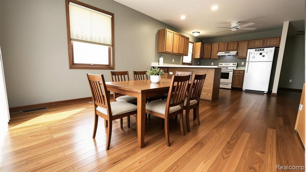 Located in the heart of downtown Pinckney, this charming Cape Cod places you within walking distance of the Lakeland Trail and all the year-round festivities the village has to offer. Whether you enjoy weekend community events or local dining, you’ll love being part of this vibrant, walkable setting. Inside, the home has been exceptionally well maintained. The spacious kitchen features abundant cabinetry, a large pantry, quartz countertops, and a convenient snack bar—perfect for casual meals or entertaining. Hardwood floors flow through the living room, kitchen, and dining area. The dining area also offers a door wall leading to the deck, extending your living space outdoors. The main-floor primary suite includes a generous walk-in closet complete with a makeup station. Upstairs, you’ll find another oversized bedroom that could easily serve as a second primary, sharing a full bath with the additional bedroom across the hall. The finished basement adds valuable living space and makes a great family or recreation room—plus, the ping-pong table stays. All appliances are included, even the washer and dryer, making this home truly move-in ready. Outside, enjoy a large side yard and a newer storage shed for lawn equipment or seasonal items.
