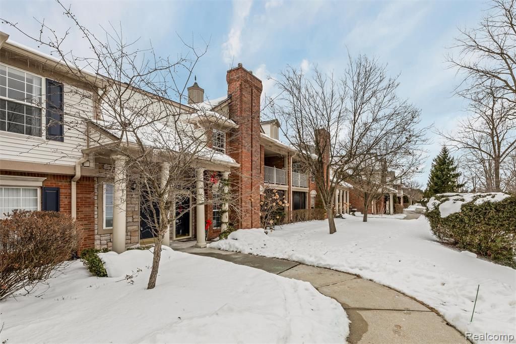 Beautiful upper-level condo with 2 bedrooms and 2 full baths. Ideal privacy layout with bedrooms on opposite sides of the living area. Both bedrooms offer large walk-in closets; primary suite includes private bath and sliding door to balcony overlooking woods and pond. Open great room with cathedral ceiling and gas fireplace. Well-appointed kitchen with stainless steel appliances. Convenient in-unit laundry. One-car attached garage with direct access. Recent updates include new flooring (2024), new carpet (2025), and fresh paint through (2026). Located in highly rated Adam High School and Van Hoosen Middle School. Maintenance-free living with HOA covering lawn care and snow removal. Community amenities include clubhouse, fitness center, pool, tennis, and basketball courts. Easy access to community beautiful trails.