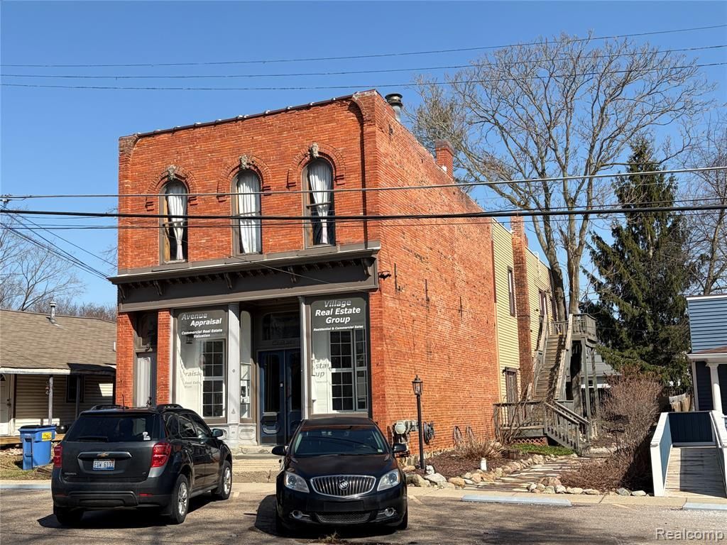 Welcome to 3568 Avon Street - a 2-story commercial/residential mixed-use building in the Village area of Hartland. The building was originally built in 1876 and is one of a few surviving commercial structures in the Village with loads of history, character, and charm. Extensively renovated in 2017 - 2019 with additional updates in recent years. The first floor consists of 1,918 SF of commercial space used as a real estate office that will be vacated at closing. The second floor is a 1,964 SF - 3 bed/2 bath apartment which is being vacated by April 30, making the entire building available for immediate occupancy. Second floor apartment features lofted ceilings, exposed brick, and original 12" wide heart pine plank wood floors. Newer kitchen with granite counters, renovated main bathroom, laundry area, 2nd floor deck, and much more. Windows on all four sides provide tons of natural light. Full basement beneath and attic in between 1st and 2nd floor provide great storage area. Mostly fenced private backyard and extensively landscaped grounds with stone path and variety of plantings. Close proximity and walking distance to elementary schools, middle school, high school, and numerous parks. Own this vintage and historic building with large living quarters and ground floor commercial space for less than the cost of a typical home in this market. The ultimate work from home, live/work set up, or investment with reasonable taxes. LC - Limited Commercial Zoning allows for single-family, office, retail, 2-family (special use), apartments (special use), and other uses.