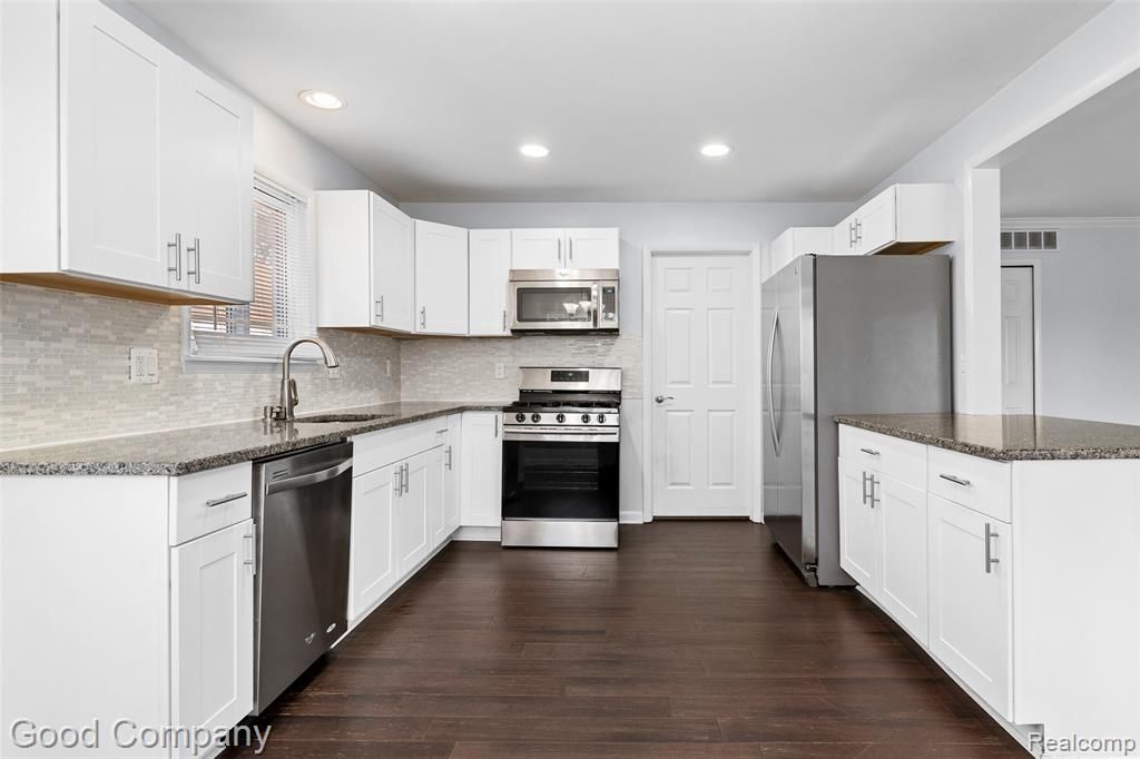 Updated 3-bedroom ranch home centrally located near downtown Royal Oak, Birmingham, and Beaumont Hospital offers the ideal Royal Oak lifestyle. This home features dark engineered hardwood floors flowing through an open-concept living space and a large, modern kitchen with white shaker cabinets, granite countertops, and stainless appliances—perfect for hosting or relaxing. The bright three-season room, and spacious deck and patio add comfort and charm, and are ready for you to enjoy this summer! The home also features a 2.5-car garage with loft storage, fenced yard, Ring and ADT-ready hardware, plus in-unit laundry. Walk to Normandy Oaks Park and Elks Park. Close to shopping, restaurants, and easy commute.