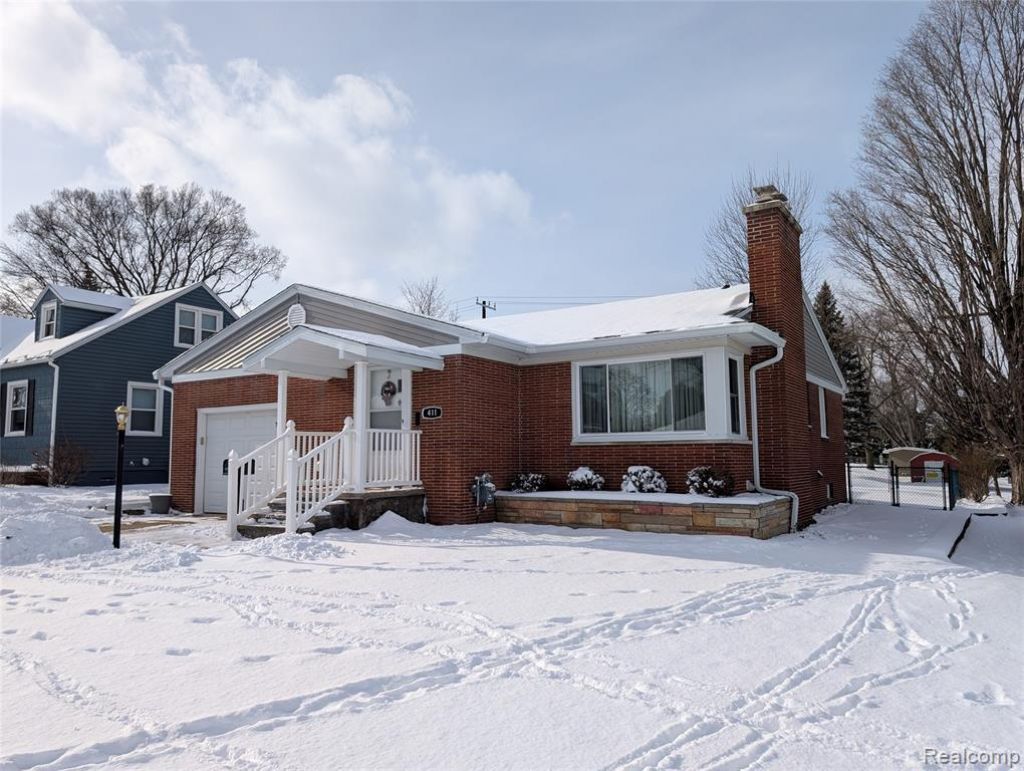 Charming Brick Ranch with Modern Updates - This beautifully maintained 2-bedroom, 2-bath brick home is full of character and move in ready. Located on a quiet street not far from schools, it’s ideal for comfort and convenience. Original hardwood floors grace the bedrooms, while a spacious living room features a cozy gas fireplace, ideal for relaxing evenings. The home boasts an open-concept layout connecting the kitchen, dining area, and family room — perfect for entertaining. A large picture window frames serene views of the fully fenced backyard, often visited by deer and birds. Most doors, roof, and windows were replaced in 2024, offering peace of mind for years to come. The main bathroom includes a luxurious walk-in tiled shower, and laundry hookups are conveniently located on the first floor. A full, partially finished basement provides additional living space or storage potential. This inviting home is ready to welcome its next owner!