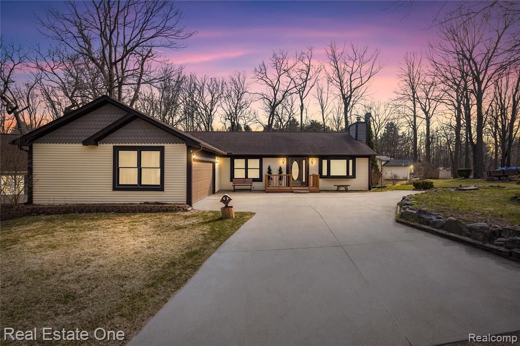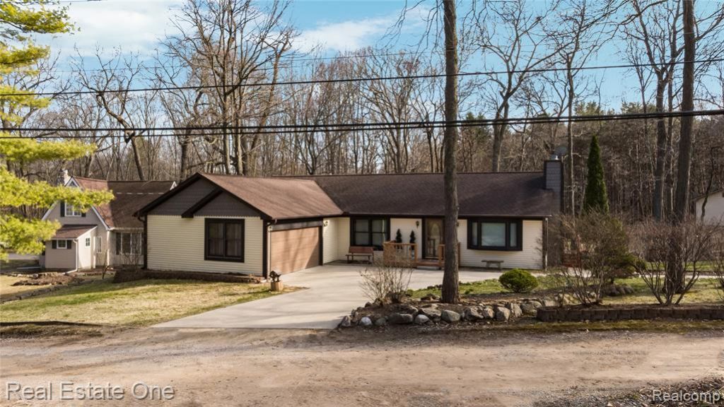 Discover this move-in ready ranch home set on a spacious half-acre lot bordering lush woods, offering plenty of privacy and outdoor enjoyment. Perfect for families, this property features a playscape, shed, and room to build a treehouse. Built in 1991 and thoughtfully updated, the home includes a high-efficiency furnace and A/C, Renewal by Andersen windows, a dimensional roof, and a cement circular driveway for added convenience. Inside, enjoy an open-concept layout that seamlessly connects the living room to the generous kitchen and nook, ideal for gatherings. Both bathrooms have been beautifully remodeled, with the primary bath showcasing a standout design not commonly found in this price range. For those who love water activities, private access to Walter's Lake is available for a small fee, complete with a beach area. If you are in the market for a ranch home with desirable features and a serene setting, this property is a must-see! Immediate Occupancy, take advantage of the low first year taxes!