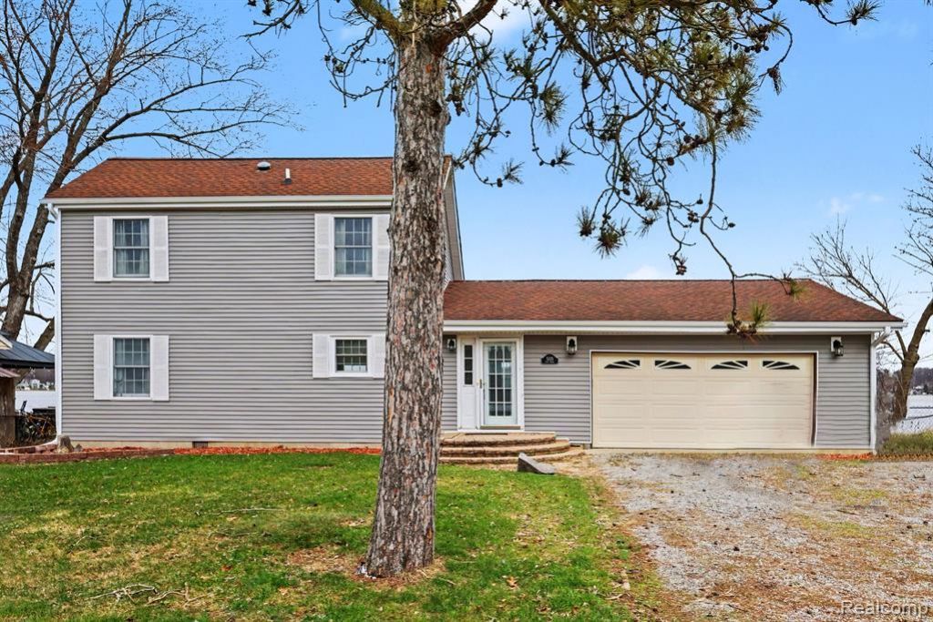 Run, don't walk, to see this gorgeous home, Lake Life at its best, and offered at the start of the spring season. On an all-sports lake, this Cape Cod home boasts a master bedroom on the main floor with a fully remodeled bathroom, making it the diamond on the lake. 2 spacious bedrooms and a full bath upstairs is accessible from either bedroom that overlook the main floor and the lake. The kitchen has amazing counter space for potluck meals, with an open-concept feel throughout the home. While relaxing with your morning coffee or evening glass of wine, gaze out towards the lake through the wall of doorwalls and watch the sun rise or set. What a perfect start or end of the day. Extra generous driveway for ample parking for all your guests attending the holiday lake party. A half bath on the main floor accessible from the front or back door, with laundry next to it! Garage access from the house, roadside, and lakeside, so convenient. Access to the crawl space through the main floor bedroom closet. The natural light is amazing, even on a rainy day, so relaxing!