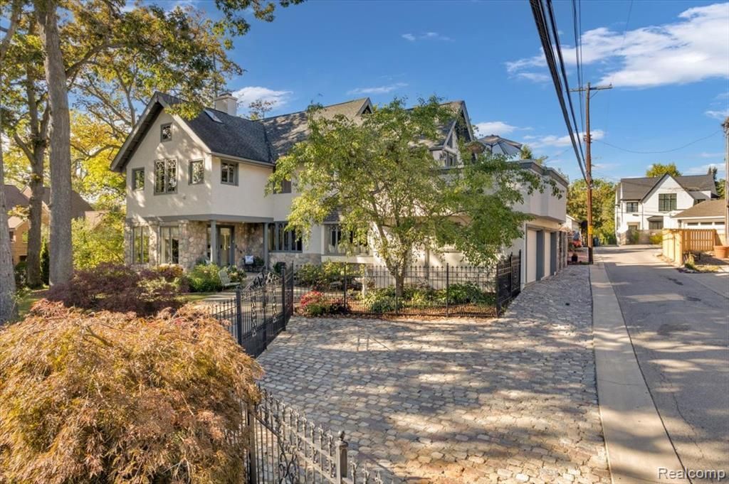 Nestled in the heart of the desirable Little San Francisco neighborhood in Birmingham, this charming Arts and Crafts style home offers unparalleled privacy and serenity on a spacious double lot. Just steps from downtown Birmingham, with Quarton Lake, Booth Park, and an array of restaurants and shops nearby, it combines urban convenience with a tranquil retreat. The exterior boasts a stunning stucco, stone, and wood trim elevation, enveloped by a black iron fence and stone and block wall that fully encloses the property for ultimate privacy. Lush landscaping features many mature trees, including seven majestic oaks, and a peaceful koi pond with a waterfall, that enhances the outdoor oasis. Ample parking includes a 2-car, attached garage, plus a dedicated parking pad for up to five additional vehicles. Inside, the home exudes timeless elegance with new hardwood floors throughout the first floor and an abundance of large windows, many with decorative accents, including some original designs, all upgraded to energy-efficient double-pane glass for natural light and views. The newly updated executive chef's kitchen is a culinary dream, equipped with a premium Wolf stove/oven and Sub-Zero built-in refrigerator. This beautiful kitchen also opens to a walled courtyard perfect for al fresco dining or morning coffee. Upstairs, discover four charming bedrooms, including a luxurious master suite with an extra-large master bath featuring cathedral ceilings, a jetted tub and walk-in shower. Convenience abounds with second-floor laundry, while three cozy fireplaces add warmth and ambiance throughout the home.Elevate your lifestyle with the unique second-floor wrap-around deck above the garage, offering breathtaking views in all four directions, ideal for entertaining or simply unwinding. This property is a rare gem, blending classic craftsmanship with modern updates in one of Birmingham's most sought-after locales. 2-Car attached garage can be converted to 4-Car using lift systems (elevated ceiling); Alley Access, Electric Vehi