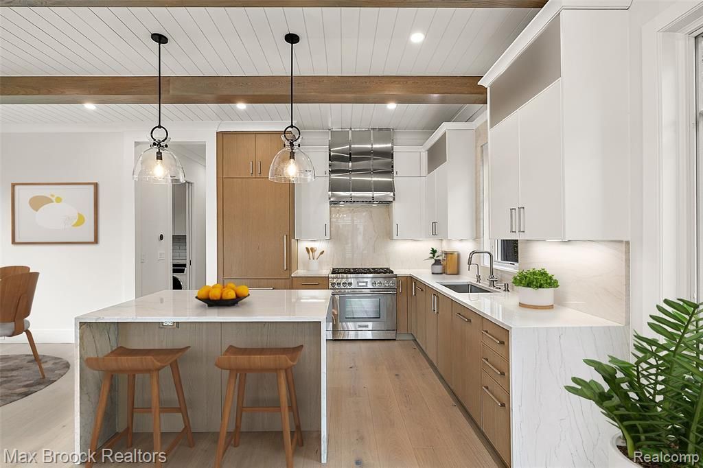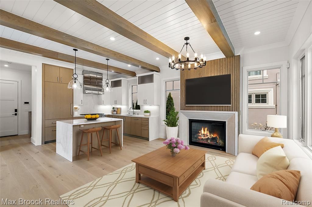Enjoy the best of city living in this stunning new Nantucket-inspired single-family home, ideally located in the heart of downtown Birmingham. With its prime location and low-maintenance lifestyle, this home offers an appealing alternative to condo living. Expertly crafted by Orchard Development, this residence is just steps from parks, dining, and shopping. The main level boasts a striking fireplace set against a beautifully designed feature wall, flowing into an inviting kitchen and dining area where exposed wood beams and rich hardwood floors add warmth and character. A waterfall island with a breakfast bar creates the perfect gathering space. A convenient laundry room and powder room complete the level, with an additional washer and dryer on the second floor. Upstairs, the luxurious primary suite includes a thoughtfully designed bathroom with dual vanities and a private water closet, along with a spacious walk-in closet with custom built-ins. Two additional bedrooms each enjoy their own ensuite bathrooms. Adding versatility, the third floor provides two flexible areas that work beautifully as a home office or studio. The exquisitely finished lower level includes an expansive great room and a sleek modern bar with a full refrigerator and dishwasher, along with an exercise room and a full bathroom for added convenience. This exceptional home offers elevated living, with every detail designed for comfort and convenience in an unbeatable location. Schedule your tour today!