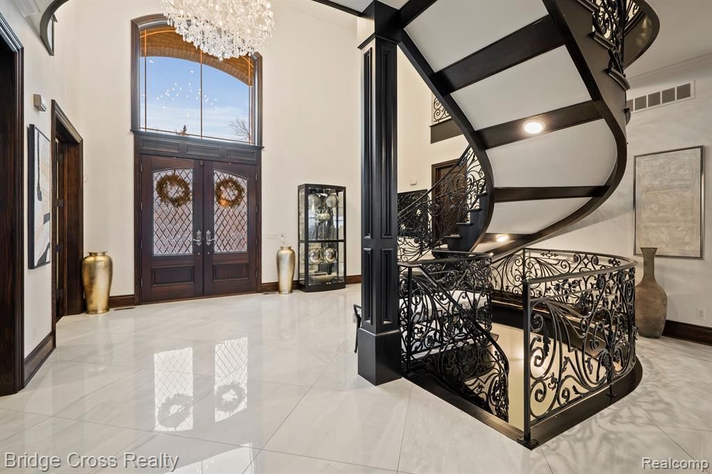 Experience unparalleled luxury in this stunning 8,500 sq. ft. waterfront estate on all-sports Upper Straits Lake in Orchard Lake, Michigan. This exceptional 4-bedroom, 5 full-bath, 3 half-bath mansion boasts 80 feet of pristine lake frontage on a double lot with breathtaking views. Step inside to soaring 20-foot ceilings, heated floors, and three grand fireplaces. The gourmet kitchen is a chef’s dream, featuring top-of-the-line Thermador appliances, a Sub-Zero refrigerator, and exquisite finishes. A private elevator offers effortless access to all levels. This estate also comes equipped with a whole house generator.The lower level is designed for entertaining, complete with an oversized walkout terrace, kitchen, fireplace, and a retractable projector screen. The 3.5-car heated garage provides ample space for vehicles and storage. Indulge in lakeside living with this rare opportunity to own a masterpiece of craftsmanship and design.