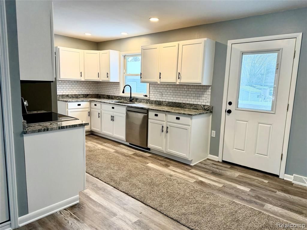 Beautifully updated ranch home, sitting on over an acre of land. Mature trees in the the yard with plenty of room for a nice fire pit volley ball or future pole barn build. Property’s south lot line is at the mature tree line. Exterior features a large deck facing the east for beautiful sunrise views. Over sized 2 car garage with cement and electric and large shed in the rear of the yard. Interior features new kitchen with granite counter tops and brand new appliances. Updated bathroom, new waterproof vinyl flooring, new carpet and paint throughout. All three bedrooms feature cedar closets. Potential family room and two more bedrooms in the basement, with finishing touches and a couple egress windows installs. Room measurements included in rooms on listing. Close to grocery store, gas station, and M-24. Nothing to do but move in and enjoy your new home. Home is agent owned.