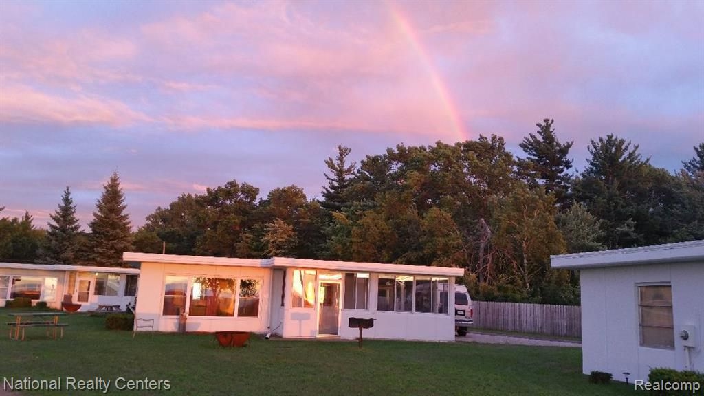 Experience stunning sunsets and occasional whitecaps from the comfort of your living room and kitchen. This lakefront condo offers low-maintenance living with a private entrance, beautiful water views/access, and premium parking unique to this side of the community. One of only two units featuring an expanded sunroom with lockable storage and access to a custom patio with built-in fire pit. Enjoy association-maintained grounds including daily pool cleaning, lawn care, beach grooming, and amenities for outdoor recreation. Watch regattas and sailboats in the bay, or take in clear views of Charity Island on cloudless days and nights. The spacious interior includes two bedrooms, an attached carport, updated picture window, large French doors, and an open-concept living/kitchen/dining area. Unit comes complete with furniture, including a well stocked kitchen, bedding, built in dressers in both bedrooms, unit air conditioners, patio furniture, some wall decorations stay. Located just one mile from downtown Caseville with easy access to nearby attractions and seasonal events. Association handles exterior maintenance including painting of cottage, roofing, driveway rocks, and landscaping care. A truly peaceful setting with thoughtful updates throughout. Agent owned