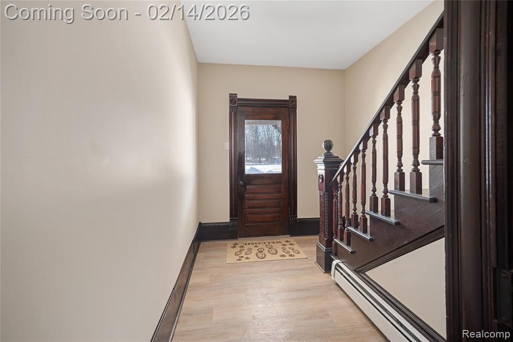 Fall in love with the classic silhouette of this 4-bedroom historic gem in the heart of Carsonville. From the six-gabled roofline to the sweeping, curved wrap-around porch, this home exudes curb appeal and small-town charm. Inside, you’ll find meticulously preserved original woodwork and a stately staircase that anchors the home. The "old" meets "new" seamlessly with a unique art-deco fretwork cornice separating the living and dining areas. Featuring a spacious 1,550 sqft layout, a detached 2-car garage, and a location that puts you minutes from the shores of Lake Huron, 63 N Main is the perfect place to call home. Includes refrigerator and stove.