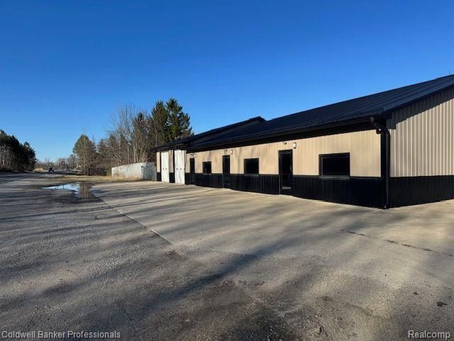 Great opportunity to locate your business here and get maximum visibility along the very busy M-24(North Lapeer Rd) corridor. This building has so many possible uses. Contracting/Service companies - need a show room and office space, as well as product storage or assembly area? This space is perfect! The north end is a 32x45 section with 3 10' power overhead doors, water, and piped for your desired heat source type. The remainder of the building is an open 60x45 space with 3 separate bathrooms, 2 furnaces and 2 AC units ready for your build out. Use the entire space for your business or create 2-3 separate business spaces and lease the unused space for additional income. Ample parking in the front for customers, while providing parking space for company trucks/service vehicles in the rear of the building behind the gated entry points. Perfect for HVAC, Electrical, Plumbing contractors, etc. Perfect opportunity to build out 2-3 separate professional office spaces to accommodate any type of service business that wants easy access for their clients, convenient parking, and the high visibility; Insurance, Medical, Physical Therapy, Attorneys, Real Estate, etc. The possibilities are endless. Additional 30x40 structure with roof and one existing steel wall and cement floor located just to the north end of the building. Purchase of the building by competing businesses of the current owner is prohibited. Those prohibited business include scrap and waste business and auto sales. Land contract terms available. 30% down, 8.5% interest, 10 year balloon payoff.