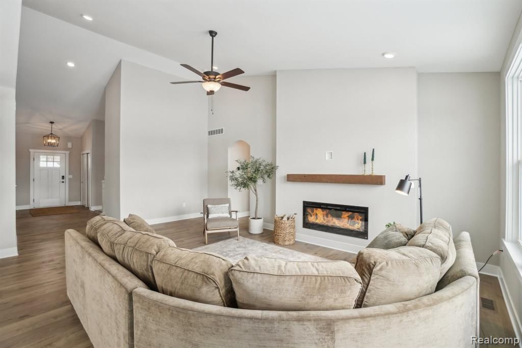 Capital Custom Homes presents the Sycamore Ranch Plan, featuring a covered Trex® deck, full sod, and irrigation. This thoughtfully designed home offers over 3,000 sq ft of finished living space, including a finished daylight basement ideal for an in-law suite or adult children. The open-concept main level includes 4 bedrooms, 3.5 bathrooms, a spacious mudroom, and first-floor laundry. A welcoming entry leads to a large foyer and expansive great room with abundant natural light, oversized windows, and a cozy fireplace. The well-appointed kitchen overlooks the bright eat-in nook and features a 7' island, quartz countertops throughout, soft-close cabinetry and drawers, a walk-in corner pantry, and stainless steel built-in appliances. A vaulted ceiling enhances the open living and dining areas. The private primary suite offers dual comfort-height vanities and a beautifully tiled shower. Additional features include garage door openers, a Completely Connected Smart Home Technology package, 9' Superior basement walls with R-16 insulation, a 96% efficiency Carrier furnace and A/C, and a 50-gallon hot water heater. Home includes a 1-year builder warranty and 5-year structural warranty. Located in Marion Oaks, Livingston County’s premier community, with sidewalks, streetlights, and a sports field. Convenient to shopping, dining, and freeways. Stock photos shown. Estimated completion March/April 2026. Skip the bidding wars and secure new construction today.