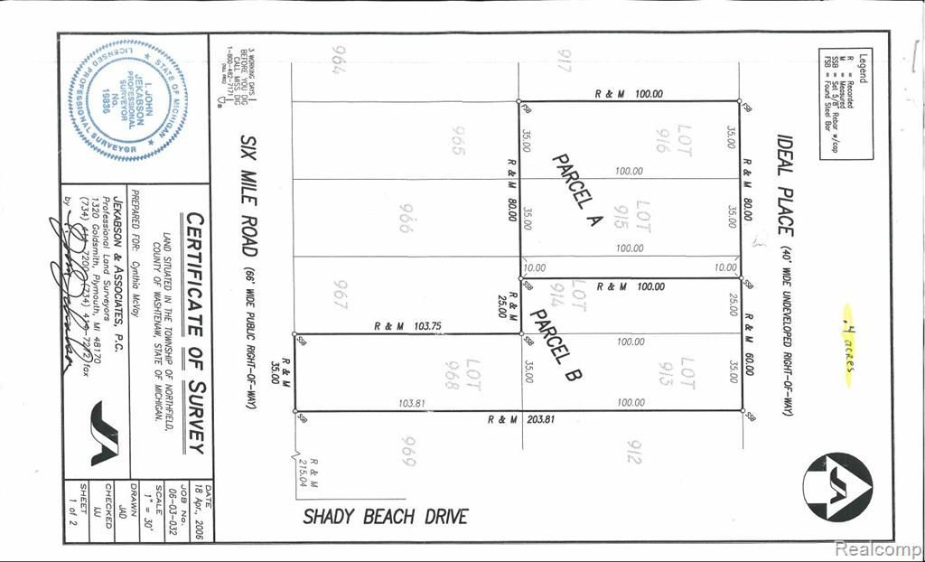 Parcel A This Combo Lot (915-916) and 10 ft of Lot 914 is available as another Package Lot with Parcel B (Lots 914, 913 and 50% of Lot 968). Survey available to determine exact location of properties. They are adjacent. See photo of property This is a great opportunity for one or both parcels. Conveniently located with easy access to freeways. Lake access to all sports Horseshoe Lake- private lake. This is one of the few lots available in a pristine, untapped location in Whitmore Lake.
