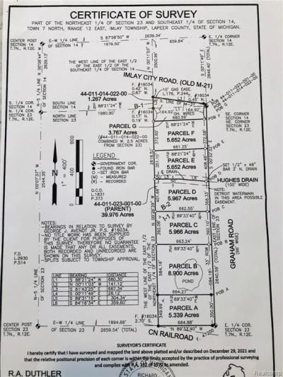 This land located at Parcel E Graham Road, Imlay Township, MI 48444 is currently listed for sale with an asking price of $134,500. The property has approximately 5.65 Acres. Parcel E Graham Road is located within the Imlay City school district. Search Imlay Township real estate on www.griffithrealty.com today.